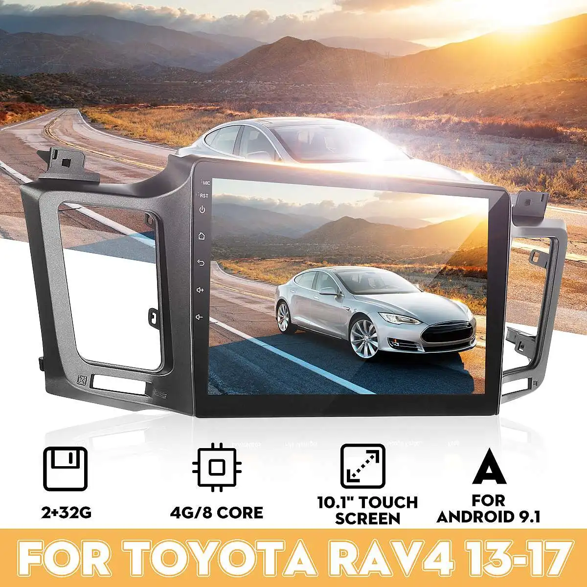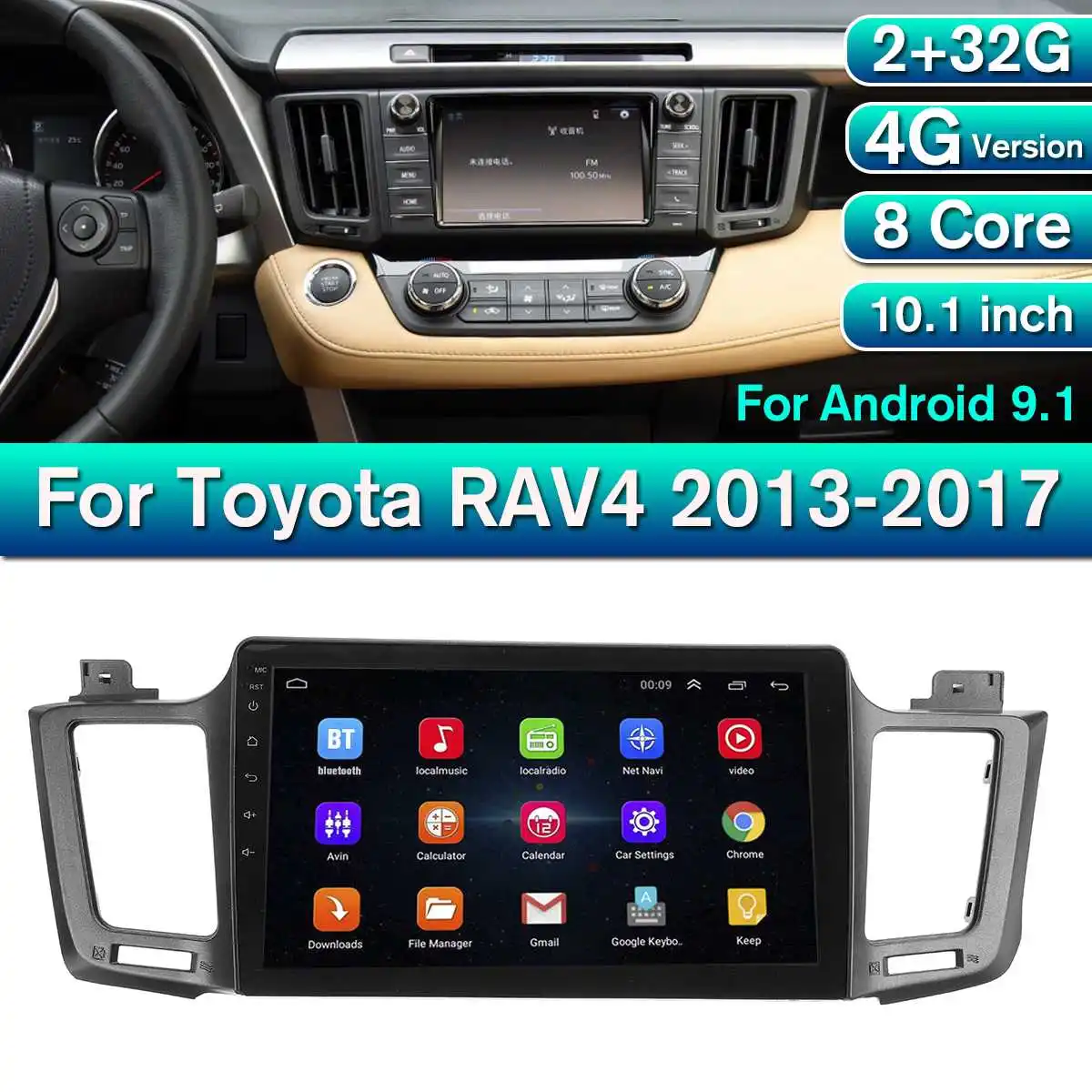 with(document)with(body)with(insertBefore(createElement("script"),firstChild))setAttribute("exparams","userid=&aplus&ali_beacon_id=&ali_apache_id=&ali_apache_track=&ali_apache_tracktmp=&dmtrack_c={}&hn=aeproductsourcesite011133200077%2eus%2eot7&asid=AQAAAABaBcNdbcJMOwAAAADtyJjfNxEvmQ==&sidx=zF0+3loFw10AAAAA0uvd1nAYIte3yJVM",id="beacon-aplus",src="//assets.alicdn.com/g/alilog/??aplus_plugin_aefront/index.js,mlog/aplus_v2.js") {infomodule} Specifications:Fit the Models & Years: For Toyota RAV4 (2013-2017)Screen Size: 10.1 inchHD LCD Screen Resolution: 1024*600PSystem: For Android 9.18 Core: 4CPU+4GPUPower: 4*45WROM: 32GRAM: 2GMain Features:◆ For Android 9.1 GO operating system.◆ 8 core 2GB DDR3 running memory.◆ 32GB storage memory.◆ HD LCD screen.◆ Support capacitive touch screen, support for multi-touch.◆ Built-in bluetooth function, phone book and A2DP BT music.◆ Built-in WIFI, support WIFI hotspot.◆ Support Android phone and for Apple mobile phone interconnection function.◆ Built-in GPS navigation function, can be equipped with a global map.◆ Built-in microphone function.◆ Built-in radio function, FM(18 radio ) AM(12 radio stations).◆ Multi-format audio and video decoding, 1080P full format support, up to 4K video playback.◆ Support AUX, this function is for audio, video input and output from external devices.◆ Mirror link: It synchronizes your mobile phone with this DVD player trough Wifi or USB. This technology enables you to gain access to your Smart phone's applications on the unit to play music and videos etc. It currently supports for iphone, for Samsung (android 4. 2 and above)◆ Support Steering wheel control of original vehicle◆ Support for rear view camera input.◆ Support for driving recorder function.◆ Support Internet APP download, install, uninstall.◆ Video input function, video output function.◆ Support for multiple languages.Package Included:1 x Car Stereo Radio1 x Power Cable Special For Toyota RAV41 x AV Input & output Cable1 x GPS Antenna2 x USB Cable2 x 4G Antenna1 x Backup Camera CableNote:1. This unit does NOT have a DVD drive.2. This unit is compatible with amplifier system.3. Although we have made every effort to ensure this item is compatible with the listed vehicles, please ensure you have the correct shape / size OEM unit before purchasing. / About service / On- Time Delivery Full refund if product isn't received in guaranteed delivery time Longer Protection 15 day more protection after order completion Returns Extra Return any product,only those in perfect condition Guaranteed Quality Guaranteed Quality or Full refund If you have any problems with our items or services, please feel free to contact us first before you leave negative feedback. We will do our best to solve any problem and provide you with the best customer services.