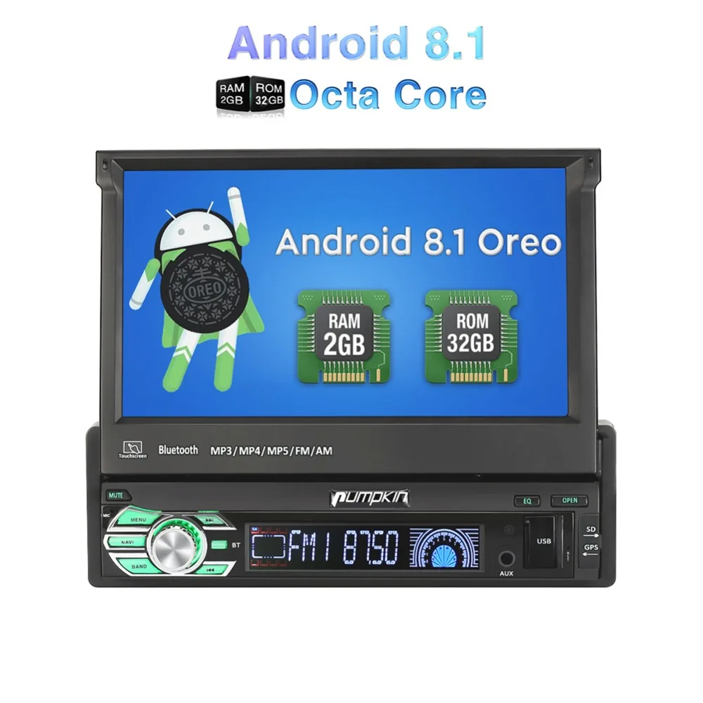 Pumpkin 1 Din 7''Android 8.1 Car Radio No DVD Player GPS Navigation Octa Core Car Stereo DAB+ Wifi 3G Bluetooth Audio Player Video link on Youtube: https://youtu.be/pNnZpVbMRYY Please Note: -The item will be shipped within 1-2 business days from verified payment confirmed. -The item will be sent to your Aliexpress adress only,please make sure your adress is confirmed. -we will not be responsiable for any delay during delivery including but not limited to customs postage checking,strike etc warranty will be voided as of