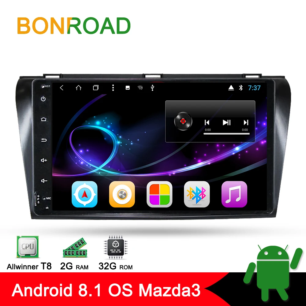 Bonroad 9" 1024*600 Ram 2G+Rom 32GB PureAndroid 8.1.0OS GPS Nav ForMazda 32006 2007 2008Bluetooth Car Player Navigation Radio NO DVD Product Description 1.Run pure AllwinnerT8android8.1.0CPU:Octa Core AllwinnerT3andruid7.1 CPU:Quad Core 2.Radio IC7786 . Chip Amplifer IC7851 3. IgoMap& Navitel map install into unit (tf card not included) 4.Language: English, Russian, Portuguese, Spanish...... 5.Bulit-inWiFi.Support 3G WCDMA Sim Card Via 3G Dongle ( if you order T8 Version we recommend you order 4G ) 6.Support carDVRfor USB connector( Optional) 7.Main Menu Logo Setting support ( setting Path: Setting--Extre Setting--Code123456) 8.Original steering wheel control Support 9.Bulit-in Bluetooth for hand free phone call, display phone book, AM/FM Radio RDS Data System. Notice: the follow introduce from Allwinner T8: