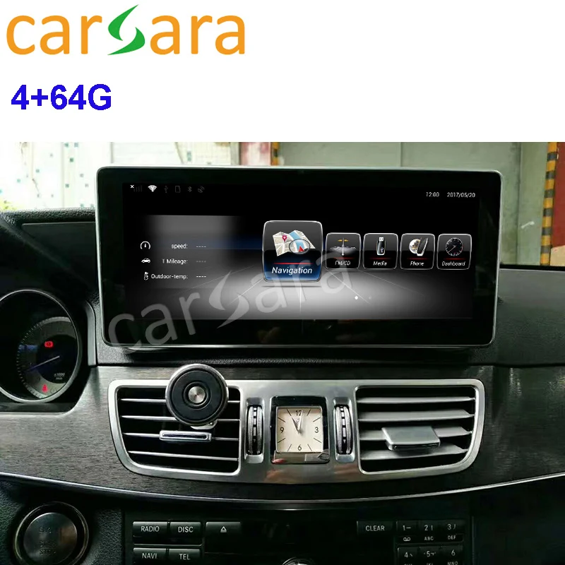 Mercedes Video for Ben z E Class W212 2013 2014 2015 10.25 Inch Multimedia Player Stereo RHD Available Compatible with Merce des Ben z LHD and RHD E Class W2122013-2015 sedan and wagon Features Plug and play, jack by jack connection without damage to car Preserve original system and functions Support car console joystick control Support car steering wheel buttons Support original reverse camera and aftermarket reverse camera video with reversing trajectory Support navigation software like Google map, Sygic, iGo, Waze, etc. Play 1080P video Play lossless audio Support screen mirror link with iPhone, Android phone by third party app easyconnection Support 4G network TD-LTE: B39 / B40 / B41; FDD-LTE: B1 / B3 / B7 / B8 in Asia-Pacific region (not support 4G outsideAsia-Pacific region) Built-in Bluetooth, support BT hand free call, BT music Built-in Wi-Fi, support to share network to display by phone hotspot UI Style After Insllation Package Content Package includes the Android navigation media player, mount braket, GPS atenna, Power cable, USB and LVDS cable Two gifts will be offered when you order. 8G SD car Car sticker ( The sticker showed below is example. It will be sent randomly with diferent patteren or style.
